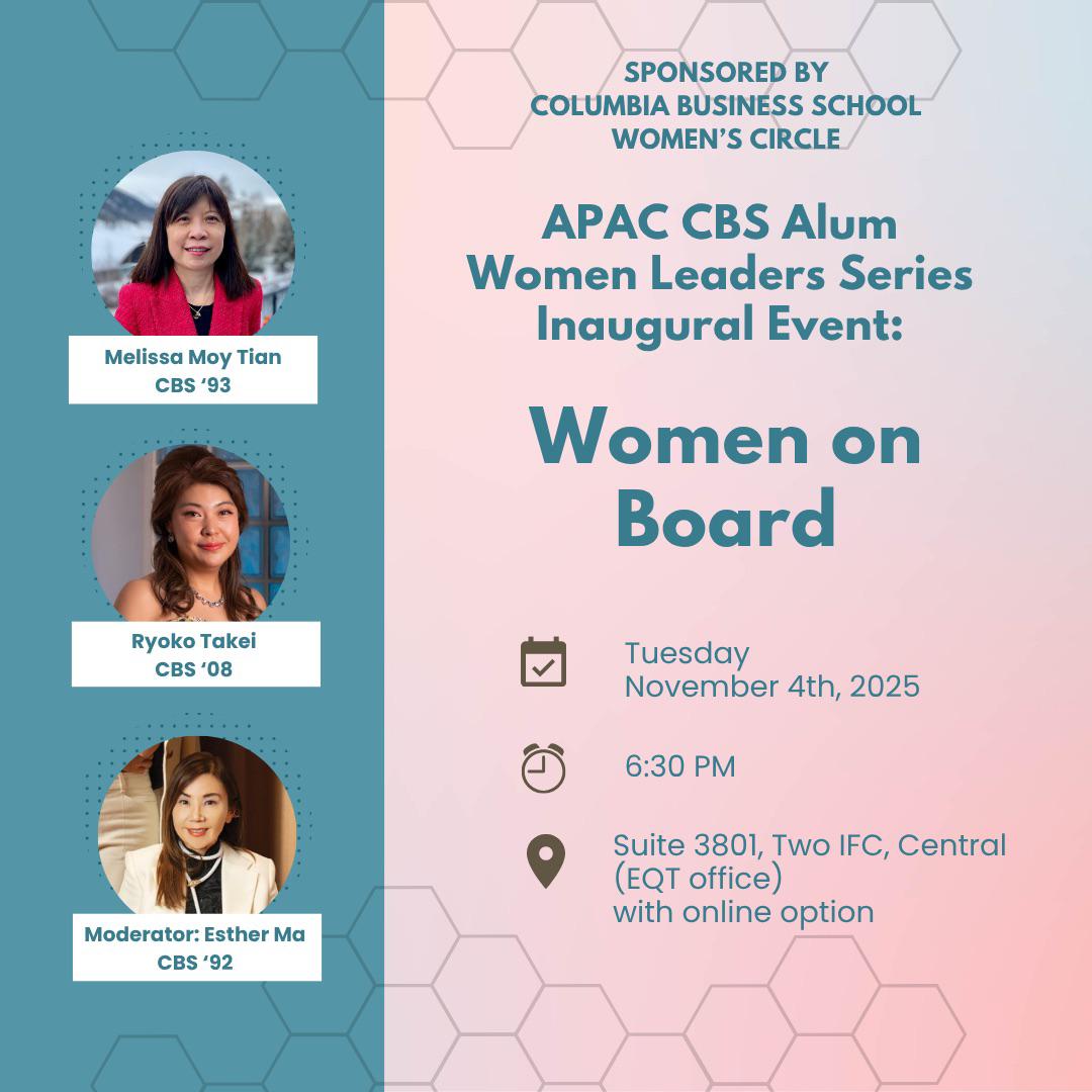 Join us for the inaugural session of the APAC Women Leaders Series, presented by the CBS Women’s Circle with alumni from Japan, Singapore, Shanghai and Hong Kong.